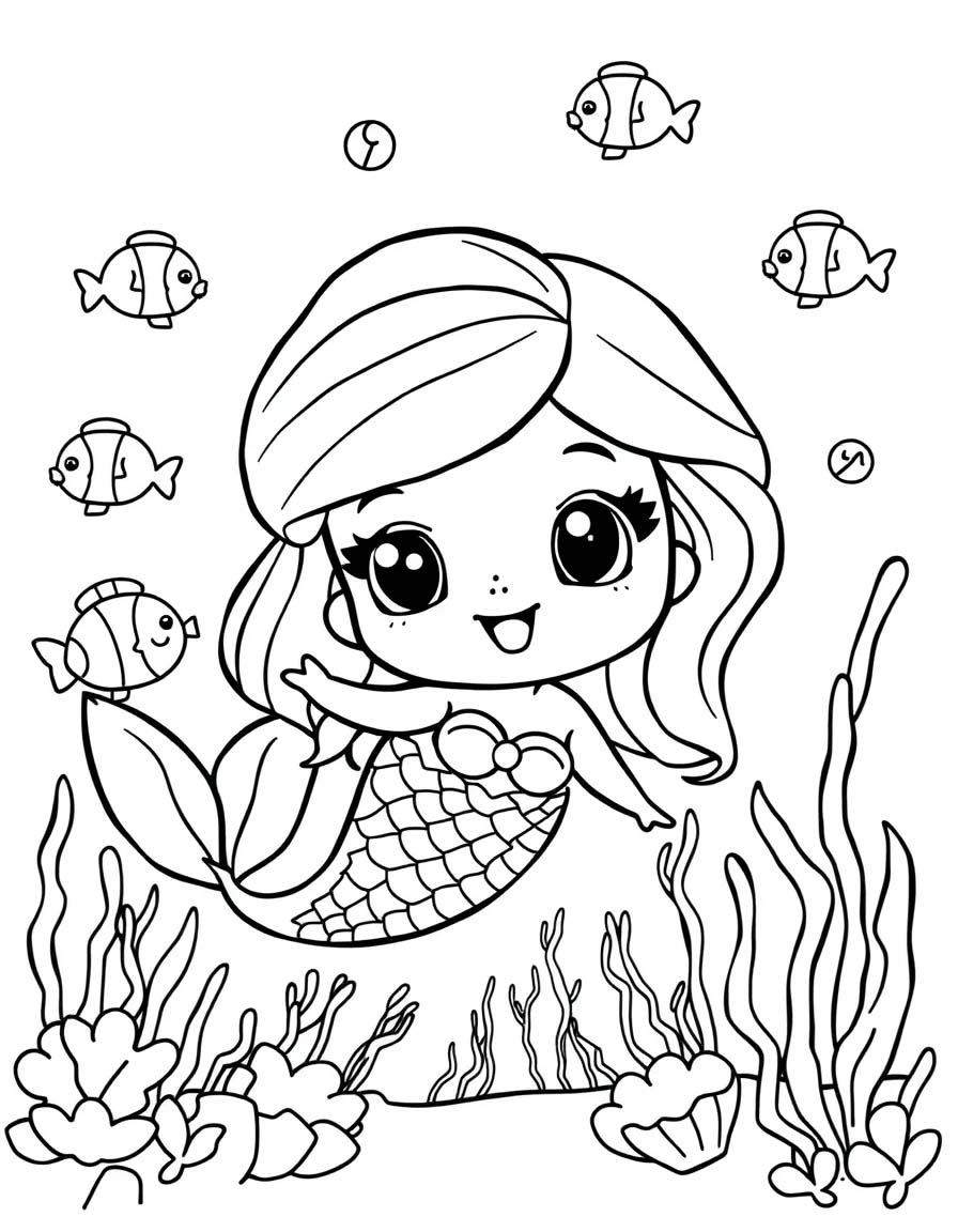 4. Boyama Zamanı: Hayal gücünüzü kullanarak Denizkızı boyama sayfasını renklendirin