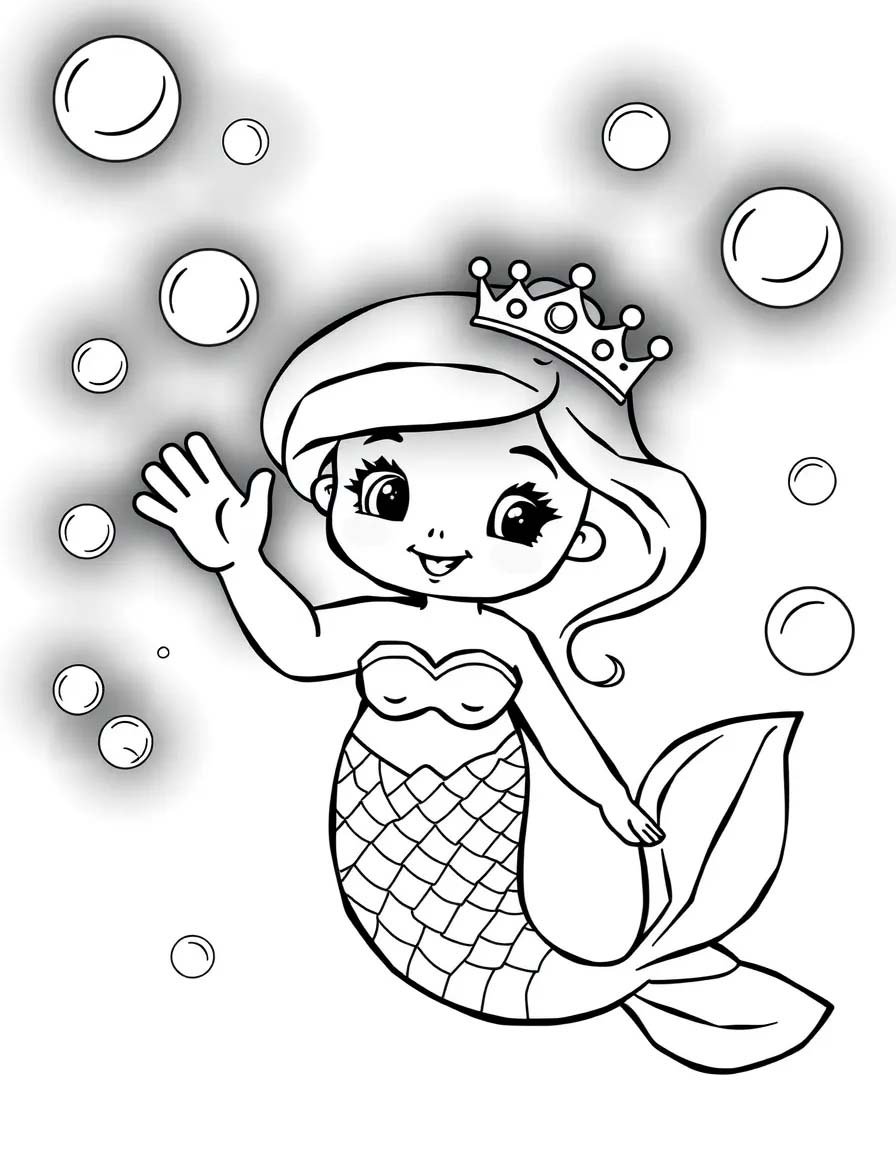 4. Boyama Zamanı: Hayal gücünüzü kullanarak Denizkızı boyama sayfasını renklendirin