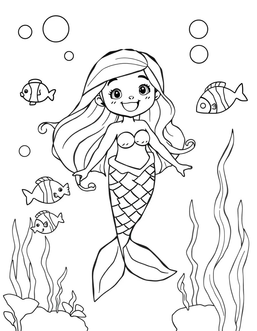 4. Boyama Zamanı: Hayal gücünüzü kullanarak Denizkızı boyama sayfasını renklendirin